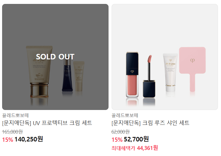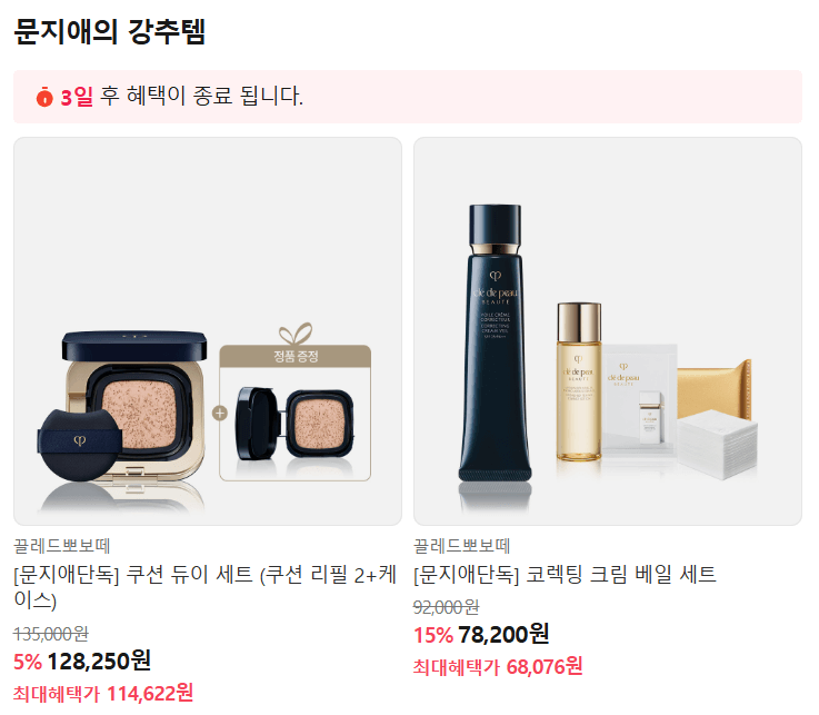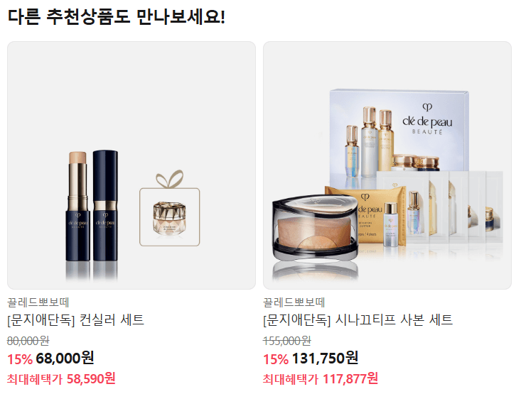 이번 기획전의 가장 큰 매력은 바로 혜택 구성입니다. 끌레드뽀 보떼의 높은 정가와 비교했을 때, 세트 구성과 할인율이 매우 실속 있습니다.