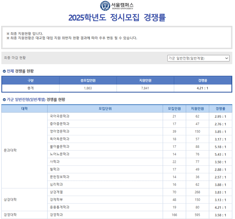 - 연세대학교 서울캠퍼스 (2025학년도)