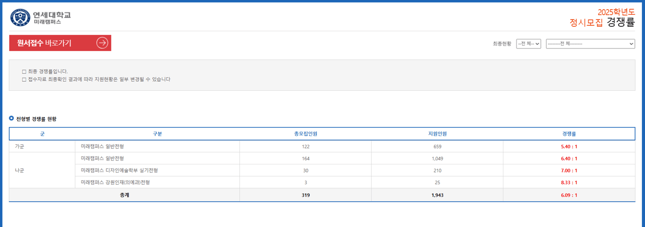 - 미래캠퍼스 2025 정시 경쟁률 바로가기