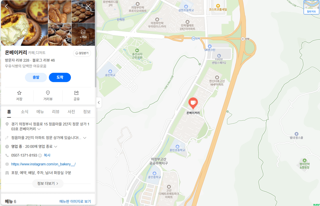 의정부 민락동 두쫀쿠 온 베이커리 위치, 운영 시간