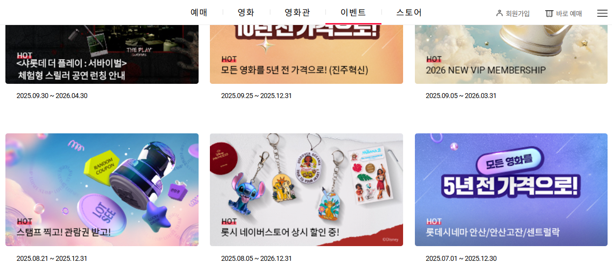 - 11월 25일(화) 오전 11시 이후 롯데시네마 공식 온라인몰에 접속합니다.