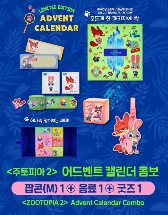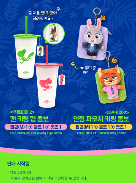 영화관에서 영화를 보며 주토피아의 분위기를 한껏 느끼고 싶다면 현장 콤보 구매가 적합합니다.